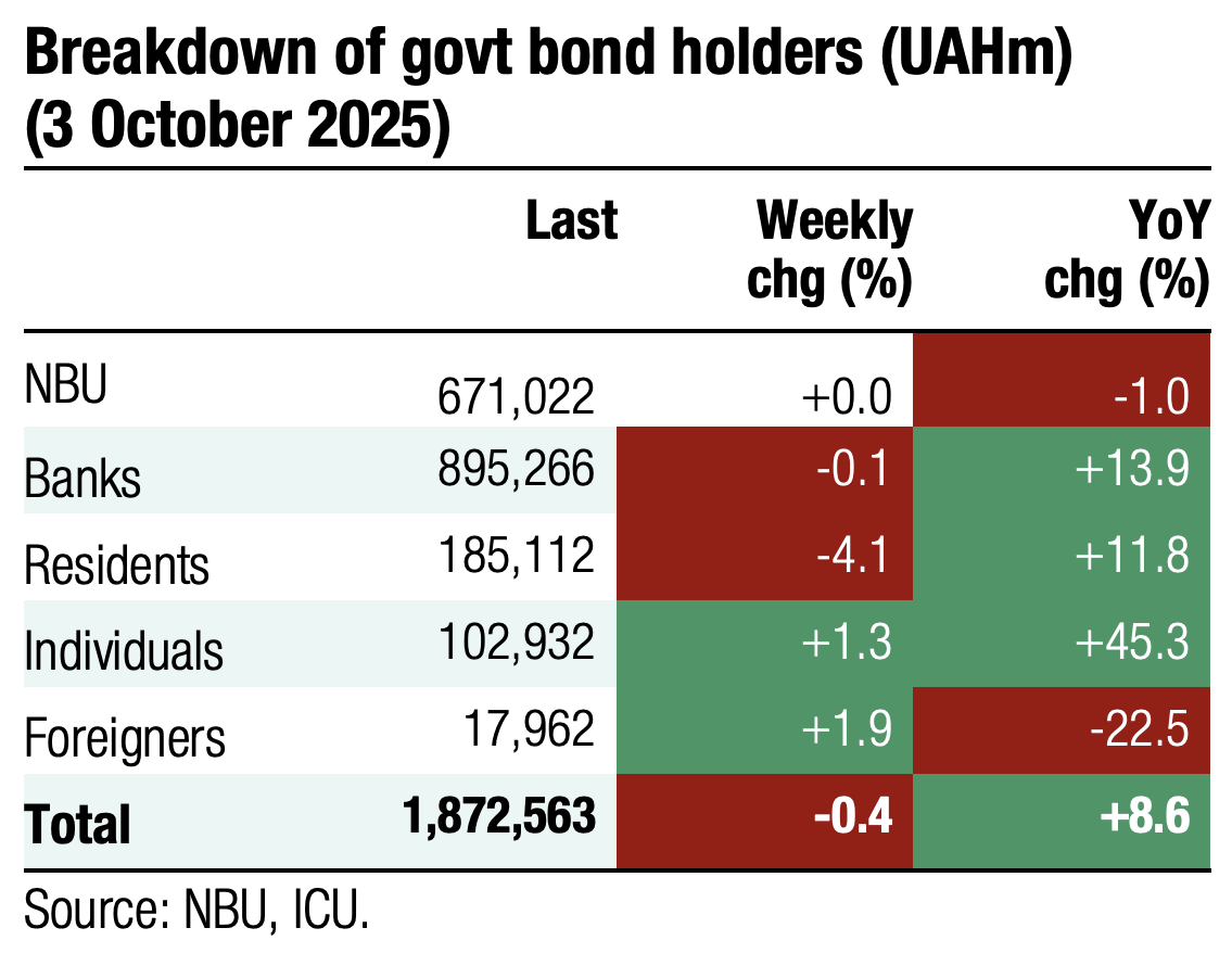 In October, the Ministry of Finance already repaid UAH20bn and another UAH25bn is due by the end of the month. Also, this week, the MoF will repay another US$350m.