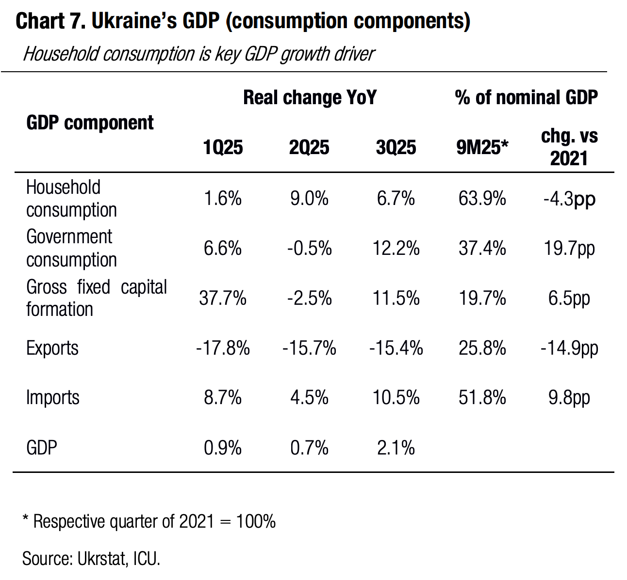 ICU view: GDP data for 3Q25 clearly show the economy is struggling to grow in the current safety environment. The fastest growing GDP components on both the production and consumption side are mainly related to defence activities. The brightest spot in the 3Q set of data is private consumption of households that is holding up surprisingly well. We expect GDP to accelerate even further in 4Q driven by crop harvesting, but the full-year GDP growth is still set to be close to 2%.