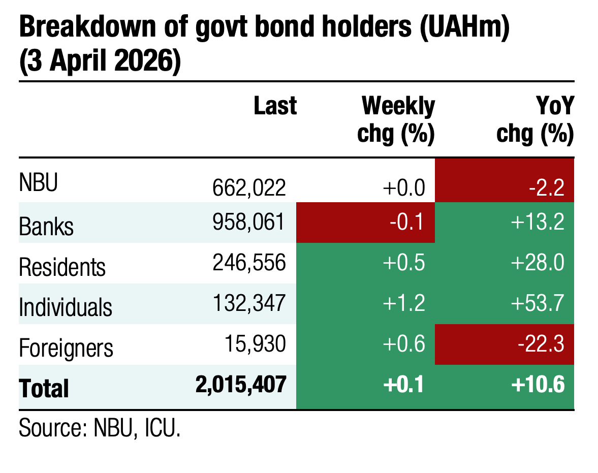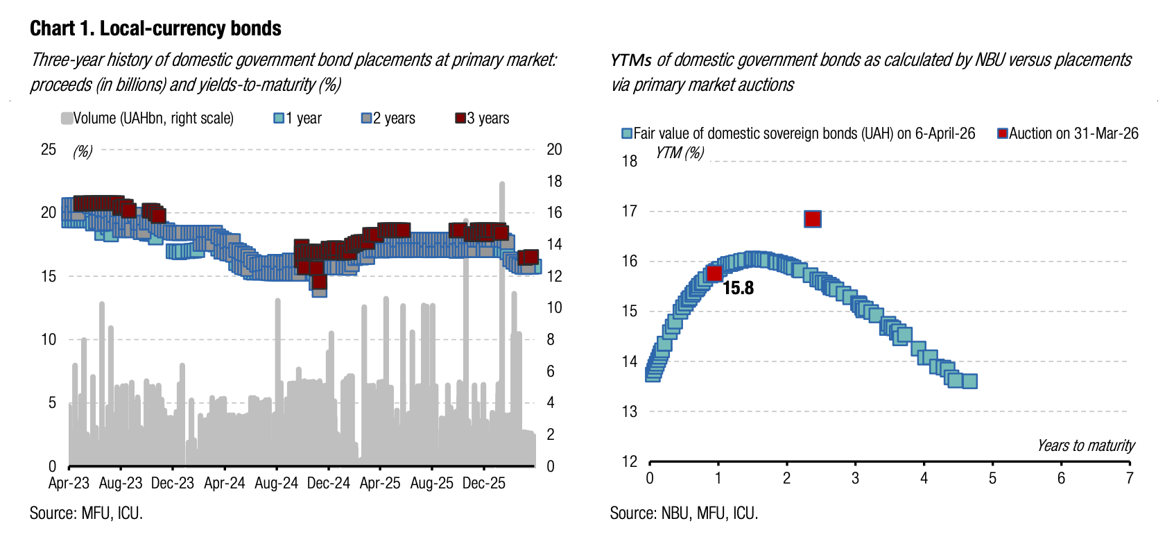 ICU view: Following two months of active borrowing and high rollover, the MoF sharply reduced net borrowings in March. The Ministry of Finance's further plans will be largely shaped by the prospects for receiving external financial assistance. If the EU approves the Ukraine Support Loan at least until mid-May, the MoF will continue to place domestic bonds at a comfortable pace targeting a rollover of about 100%. However, significant delays with the EU loan may force the government to increase domestic borrowing significantly.