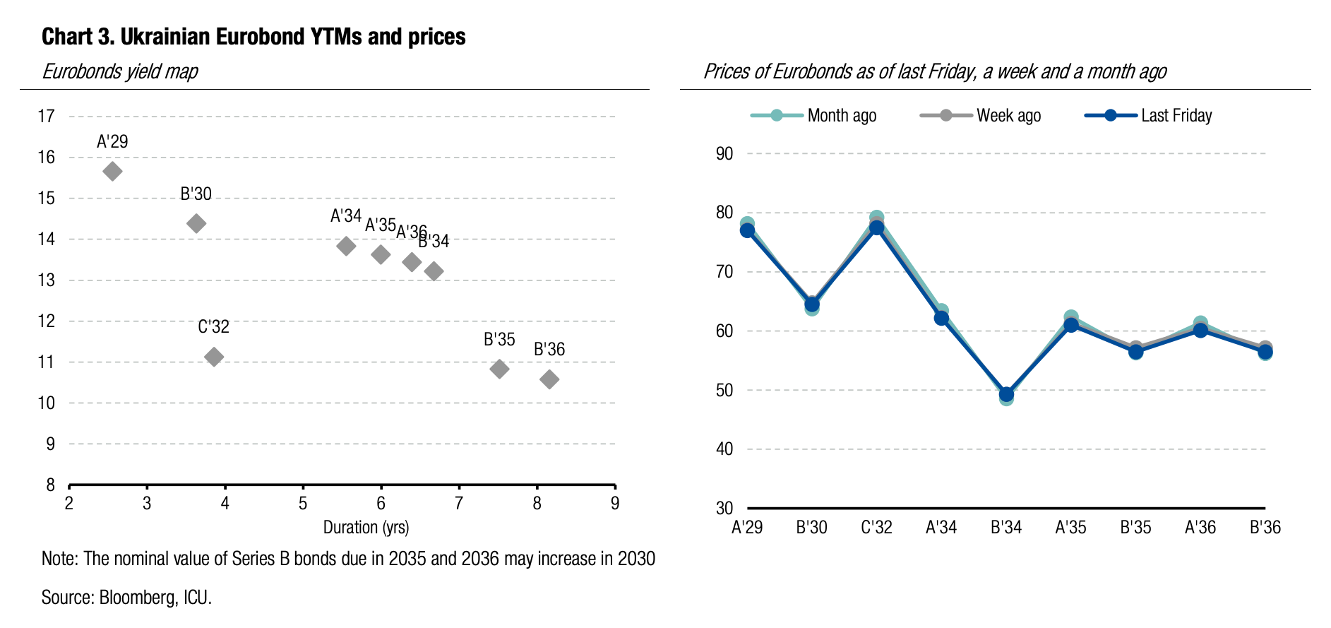 ICU view: The war in Iran is indirectly affecting Ukraine, both through a change in the focus of the global news and through a forced pause in peace talks. At present, events in Iran are more likely to be negative due to a possible reduction in the supply of critical ammunition for Ukraine, such as air defence missiles. The next round of negotiations has been postponed, leaving investors without any new guidance about prospects for a peace deal.