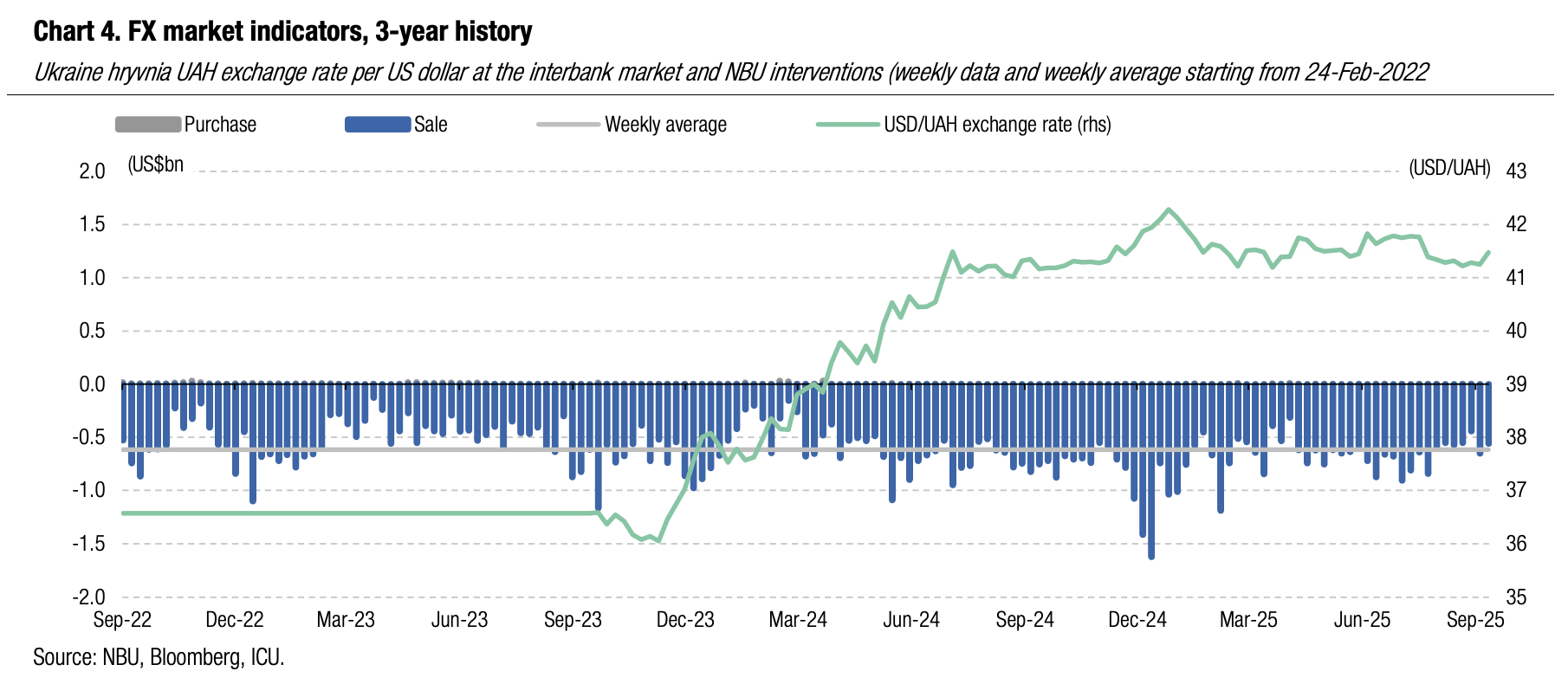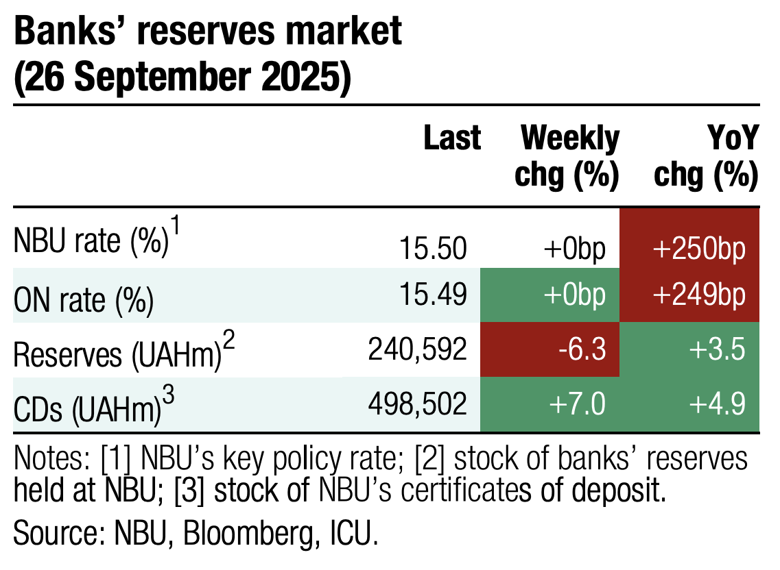 ICU view: Lower hard currency shortage due to the lack of one-off demand from governmental agencies allowed the NBU to again reduce FX sales from international reserves. At the same time, the National Bank has moved to show that it is prepared to widen the hryvnia fluctuations band.