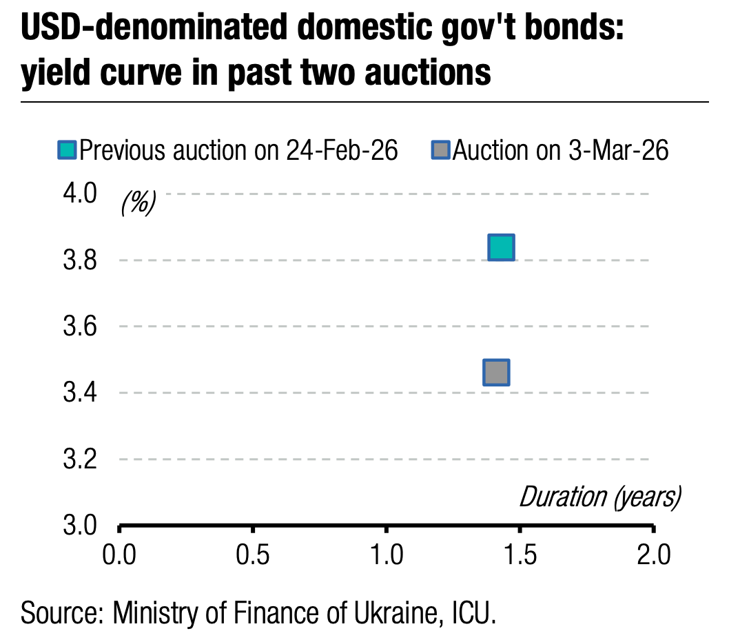 Yesterday, the Ministry of Finance launched a new three-year UAH instrument, but it did not attract significant demand. Only bonds in euros were oversubscribed.