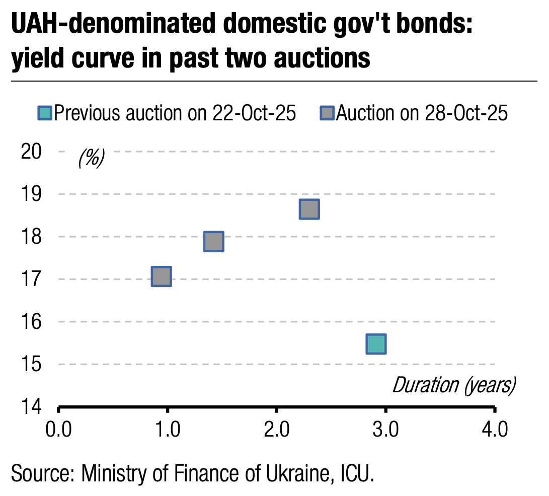 With this auction and the reserve bond swap auction last week, the ministry raised over UAH80bn in all currencies in October, the largest monthly borrowings this year.