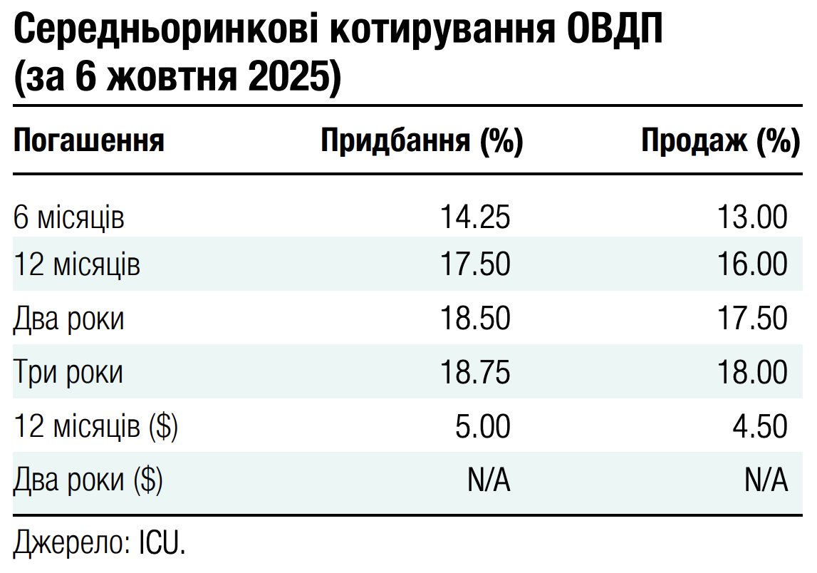 У жовтні Мінфін уже погасив гривневі облігації на 20 млрд грн, і до кінця місяця необхідно виплатити ще майже 25 млрд грн основної суми боргу. Також цього тижня міністерству необхідно погасити ще $350 млн валютних ОВДП.