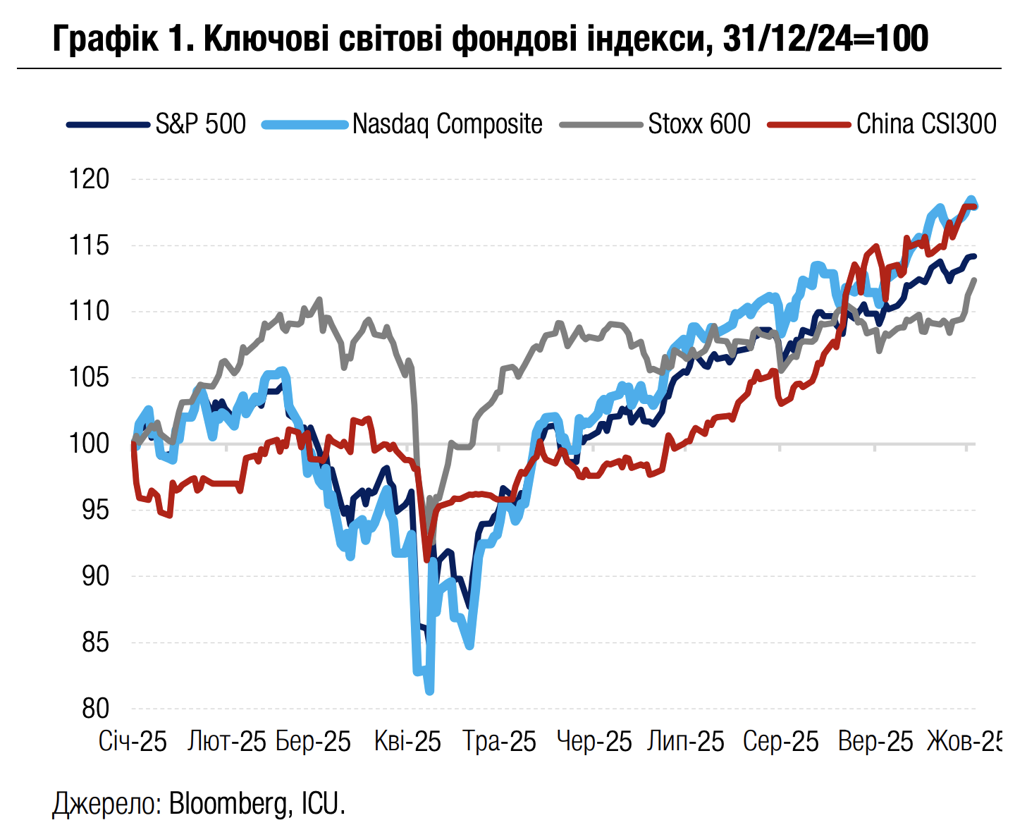Ще більш піднесені настрої панували на ринках акцій. Обидва американські фондові індекси S&P 500 і Nasdaq 100 додали за тиждень 1.1%. Цьому, зокрема, сприяли продовження ажіотажу навколо перспектив ШІ, а також угода між компанією Pfizer та адміністрацією США, яка здатна значно полегшити тягар імпортних мит для американської фармацевтичної індустрії в цілому. Новини про цю угоду, а також зростання акцій гірничодобувних компаній надали ще більший імпульс європейському Stoxx 600, який показав найкраще тижневе зростання за останні п’ять місяців – 2.8%.
