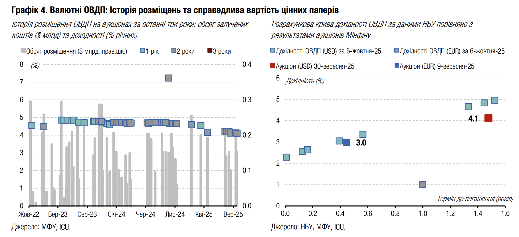 Погляд ICU: Найімовірніше, у жовтні Мінфін продовжуватиме повністю рефінансувати погашення, а також збільшувати чисті запозичення. Згідно з оприлюдненим графіком, наступного тижня заплановане розміщення нового випуску бенчмарк-ОВДП, які згодом НБУ дозволить зараховувати для покриття обов'язкових резервів. Також цього та наступного тижня будуть розміщуватися валютні облігації, і ми припускаємо, що Мінфін може знову здійснити 100% роловер валютних інструментів.
