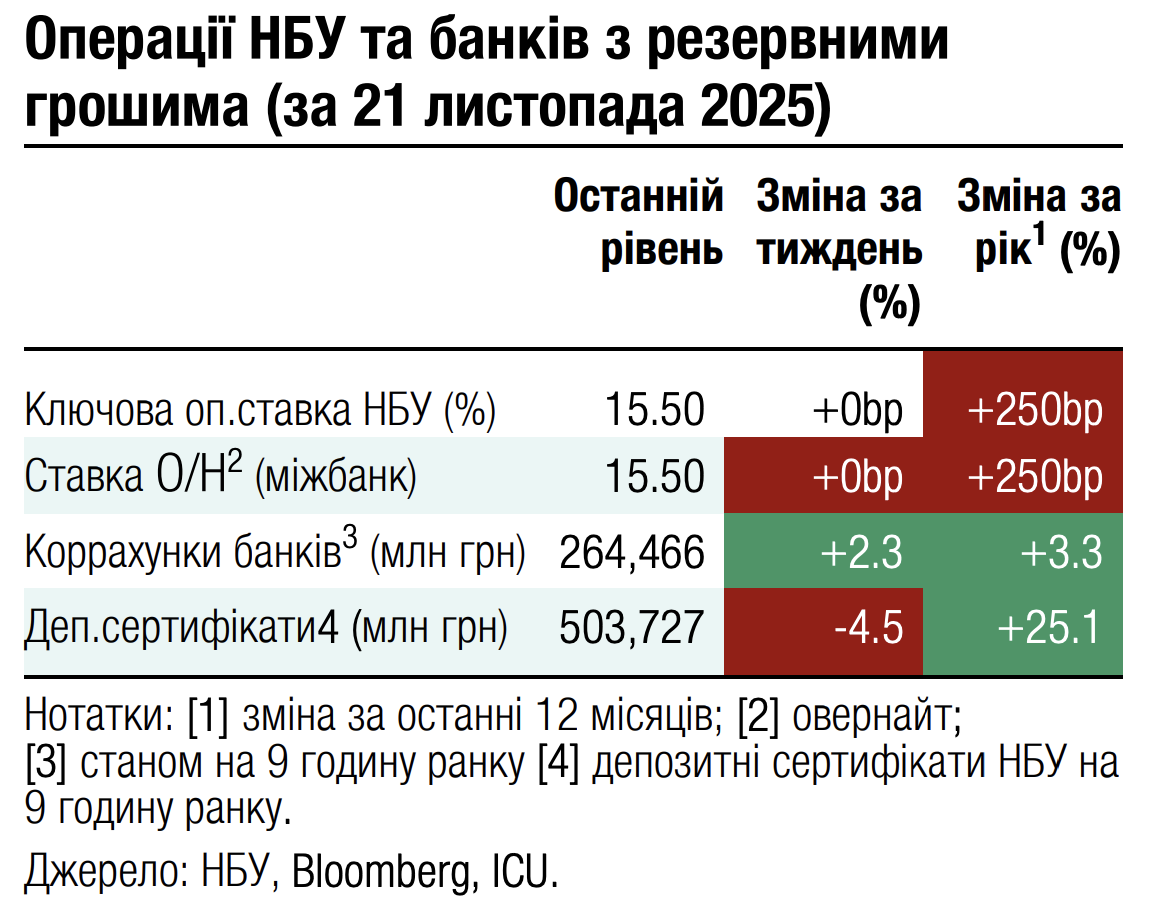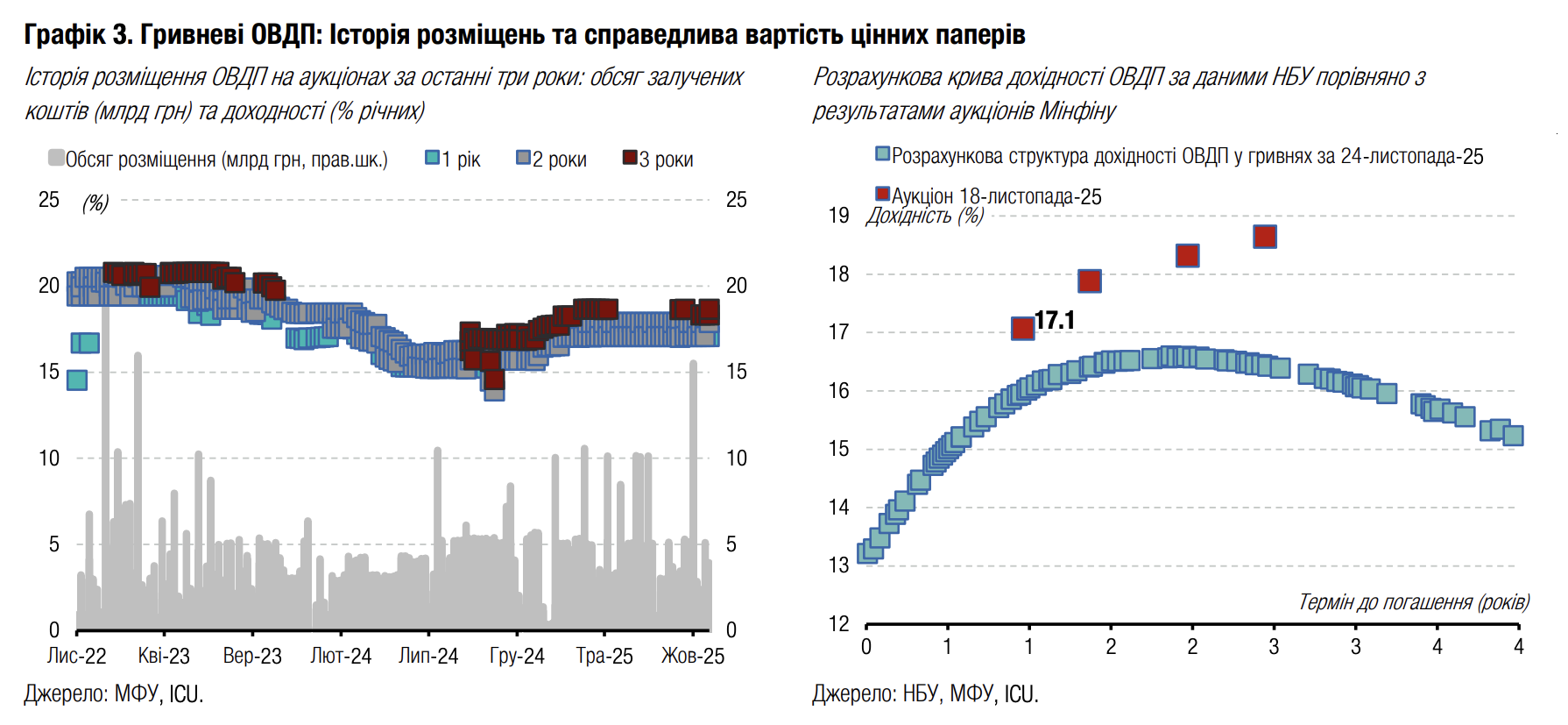 Погляд ICU: Сам факт появи нового плану зупинки війни став каталізатором зростання цін, хоч реакція була значно менш суттєвою, порівняно з попередніми подібними заявами. Загалом цього тижня настрої на ринку визначатимуться подальшими заявами про прийнятність чи неприйнятність плану з боку України та її союзників. У вихідні в Швейцарії відбулися консультації між Україною, ЄС та США, за підсумками яких вдалося відкоригувати найбільш не сприятливі для України пункти плану. Робота місії МВФ в Україні, за результатами якої може бути оголошено про досягнення згоди на рівні персоналу про запуск нової програми, привертала значно менше уваги. Перспективи запуску нової програми зараз переважно залежать від здатності ЄС погодити репараційну позику для України найближчими місяцями.