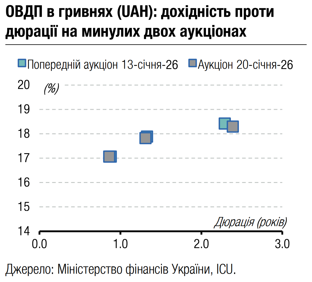 Мінфін спонукав учасників розміщення збільшити конкуренцію, особливо за нові папери, адже очікування, що НБУ таки знизить облікову ставку наприкінці січня, зростають. Водночас учасники аукціону дуже стримано поставилися до конкуренції і дозволили Мінфіну знизити ставку купону лише на 32 б.п.