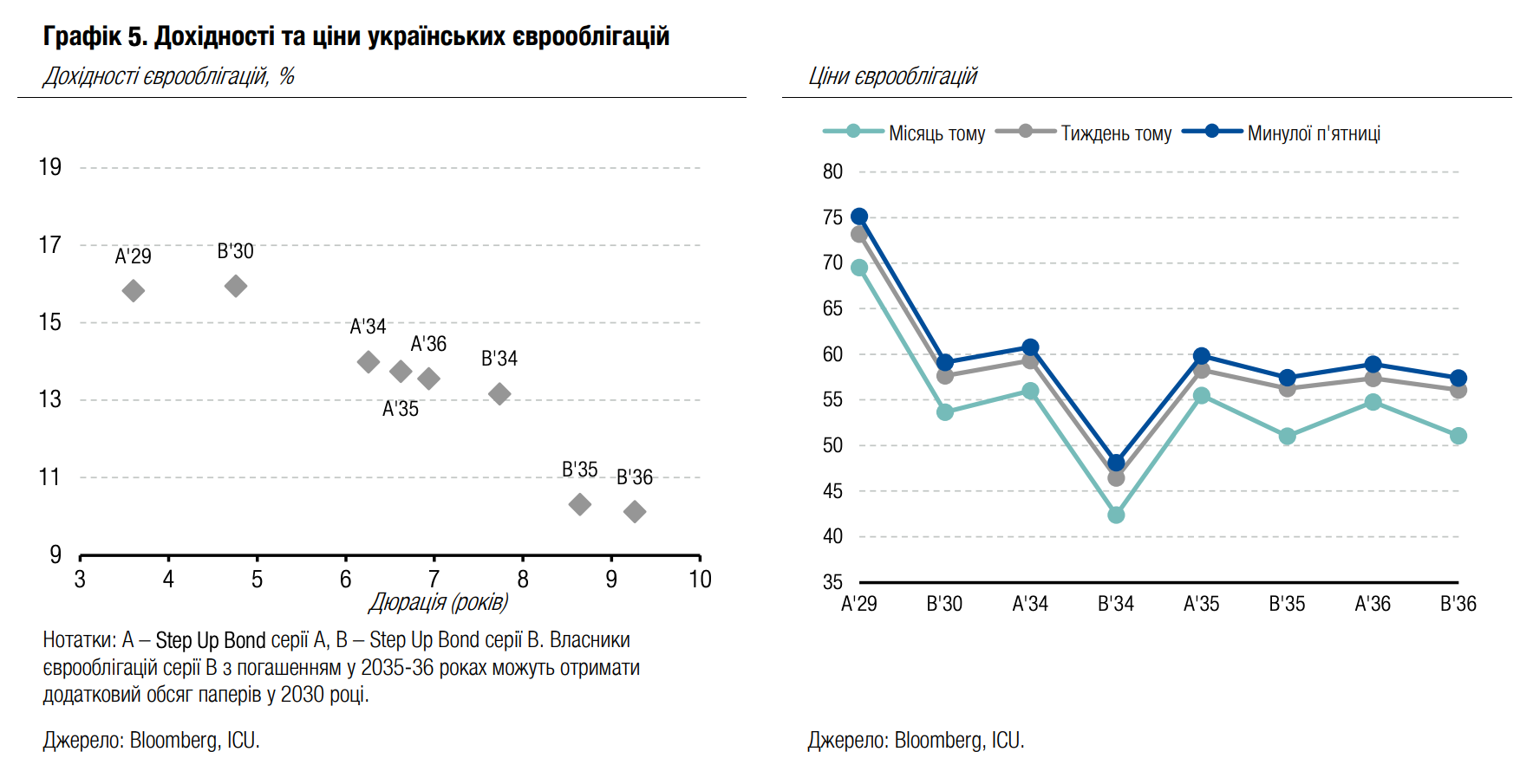 Погляд ICU: Найважливішим минулого тижня було рішення ЄС щодо фінансування потреб України на наступні два роки. Ця позика знімає ризики ліквідності для українського бюджету й дає сигнал інвесторам, що країна матиме можливість виплачувати купонний дохід за всіма реструктуризованими паперами. Важливим є також те, що ця позика не враховуватиметься МВФ при аналізі боргової стійкості.