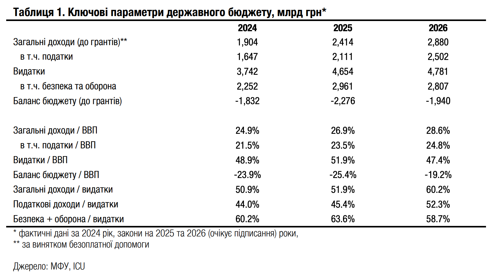 Минулого тижня парламент затвердив державний бюджет на 2026 рік. Дефіцит заплановано на рівні 1.9 трлн грн, або $46 млрд за поточним курсом. Це еквівалентно 19% ВВП наступного року.