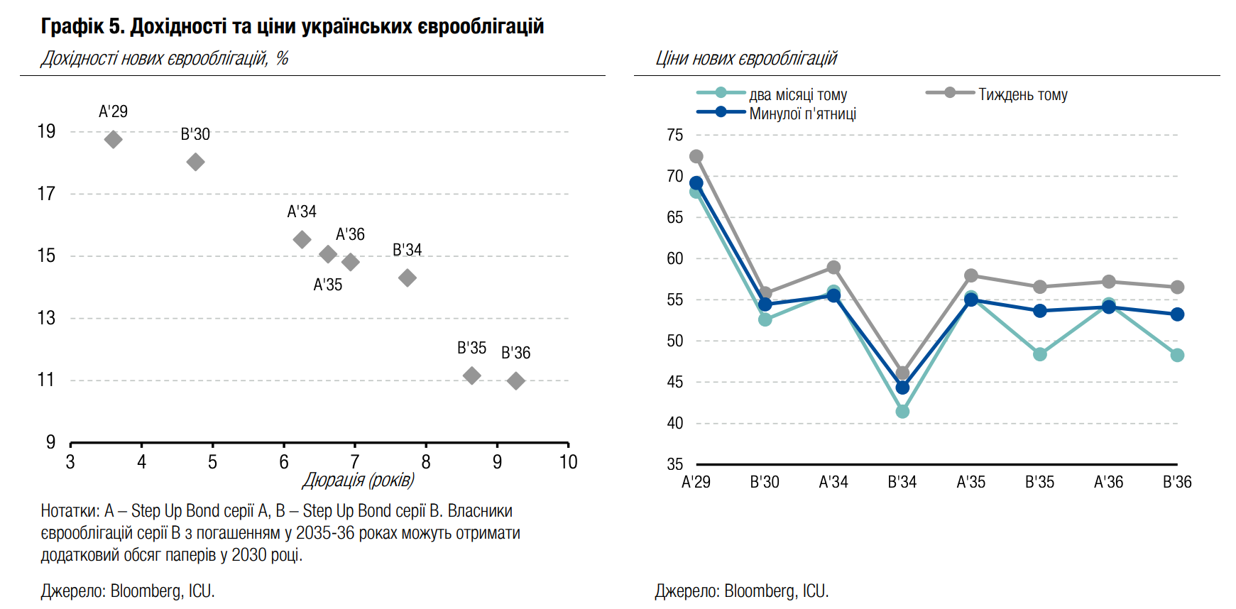 Минулого тижня представники США відвідали москву, де обговорили мирний план, однак згоди досягнуто не було. Це одразу вплинуло на ціни єврооблігацій.