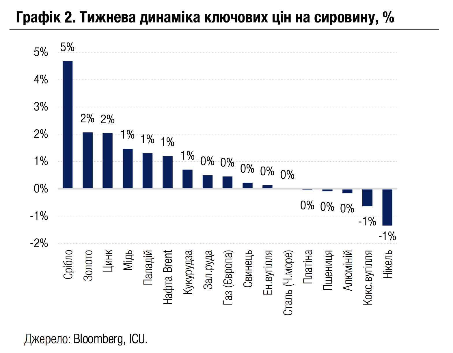 Розпродажі на ринках акцій і облігацій через гірші очікування по ставках також супроводжувалися зниженням ціни на золото, утім у тижневому підсумку вартість дорогоцінного металу зросла на 2%.